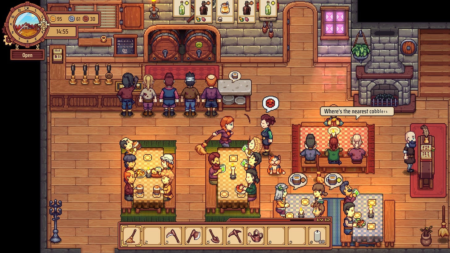 There is also very little substance in the game besides the core gameplay loop of running your tavern. Open, make money, invest it into ingredients and improvements, farm and gather, prep food and drinks, open the tavern again, repeat ad nauseam.